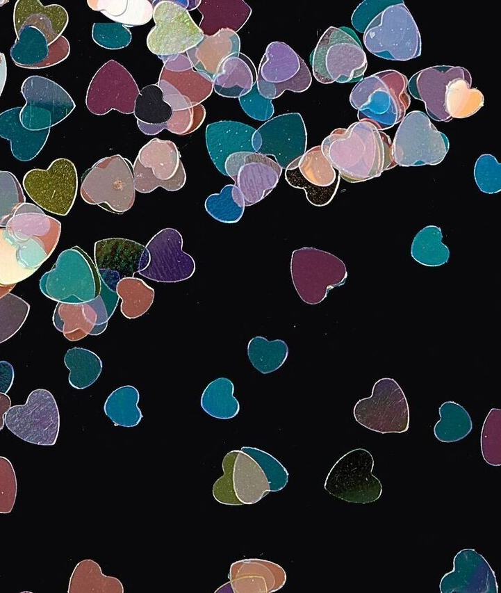 12 grid box with soft pastel iridescent heart glitter flakes